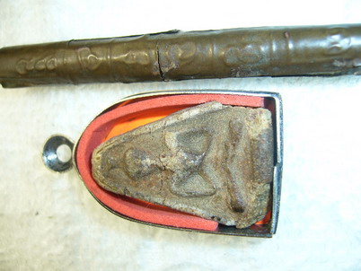 ได้มาน่านมากแล้วจากผู้ใหญ่มอบให้ไว้ใช้ คนที่ให้ก็ไม่รู้เหมือนกัน เขาบอกว่าเป็นของเก่าแท้แน่นอน แต่ไม่ทราบวัดและเกจิที่สร้าง **รบกวนสอบถามท่านสมาชิกสายตระกรุด และเครื่องรางครับ วันนี้พมตั้งกระทู้ในวันนี้เข้าไปถามเพื่อนๆๆ หลายคำถาม เพราะหัดถ่ายรูปเป็นแล้วก็เลยส่งมาถาม*อันมานานครับ |