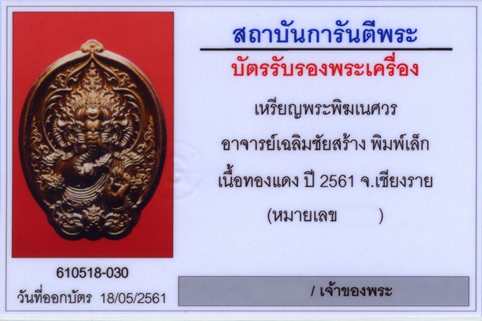 ทาง การันตีพระ ออกบัตรให้แล้วครับ