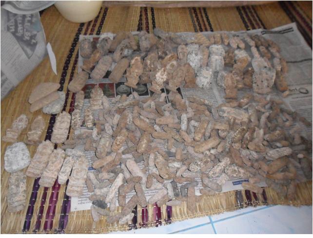 ไม่ได้ให้ดูเป็นองค์ๆให้ดูหมดเลย ภาพถ่ายมาจากหลวงพ่อที่ อ.นาดูน จ.มหาสารคาม ท่านนำมาโชว์ให้ดูเป็นพระที่ท่านบอกว่าขุดพบแต่ถูกเก็บเอาไว้ กลัวมีปัญหากับกรมศิลป์เลยไม่ให้เปิดเผย ผมขอถ่ายรูปไว้แต่ไม่รู้ว่าแท้หรือเปล่า ลักษณะเนื้อเนียนมัน แต่แกร่งมากๆ มีคล้ายๆกรวดหรือแร่ผสมอยู่ด้วย บางองค์ดูสภาพแทบไม่เป็นองค์พระแล้วเหมือนก้อนหินเลย ไว้จะถ่าย