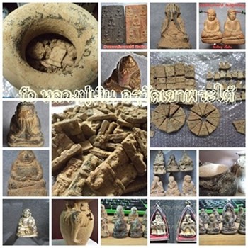 พระกรุหลวงพ่อเงินวัดเขาพระใต้ ในปี 2553 หลวงปู่สรวง แห่งวัดเขาพระใต้ได้มีการค้นพบ พระกรุโบราณ ในพื้นศาลาการเปรียญไม้ผุพัง ของวัดเขาพระใต้ อ.ทัับคล้อ จ.พิจิตร จึงได้ทำการดีดศาลาการเปรียญหลังเก่าขึ้น และได้พบกับพระกรุจำนวนมาก มีพระในลักษณะเป็นหลวงพ่อเงิน พบทั้งในห่อผ้ายันต์ และอยู่ในไหดินเคลือบดินเผา และบางองค์อยู่เกลื่อนอยู่รอบบริเวณที่ขุด เป็นจำนวนมาก พิมพ์พระที่พบพบว่ามีจำนวนมากกว่าร้อยแปดพิมพ์ และมีพระเนื้อสัมฤทธิ์เบ้าทุบโบราณ และเ้บ้าประกบ มีพระเนื้อชินตะกั่ว หรือเนื้อเงินยวงโบราณ ตามลักษณะท้องที่ที่เรียกกันติดปาก และเนื้อดินเผาที่มีลักษณะเฉพาะที่พบว่ามีแร่ทองคำปนอยู่ในเนื้อดิน จำนวนพระที่มากเชื่อกันว่าสร้างจำนวน 84,000 องค์และยังมีจำนวนมากที่ยังไม่ได้นำขึ้นมาอีก โดยหลวงปู่สรวงบอกไม่อนุณาติ เพราะยังไม่ถึงเวลา และได้มีการขนไปเก็บไว้เป็นจำนวนมากแล้ว พระกรุนี้หลวงพ่อเงินสร้างและทำพิธีใหญ่ มีสิ่งศักดิ์สิทธิ์คุ้มครองรักษา และบังตาไว้มากมาย จึงเชื่อว่าที่กรุได้ออกมาในครั้งนี้ หลวงพ่อเงินคงอยากให้ช่วยสร้างวัดเขาพระใต้ และทำนุบำรุงพระศาสนาต่อ เพราะวัดเขาพระใต้ (ศรีพรหมจริยาวาส) มีสภาพที่ผุพังรอการพัฒนาเป็นอย่างมาก สอดคล้องกับคนเก่าแก่ของวัดเขาพระใต้ เล่าให้ฟังว่าวัดเขาพระใต้นี้หลวงพ่อเงินท่านได้มาจำพรรษาอยู่จริงๆ และมีผู้นำพระดินของกรุไปตรวจหาค่าอายุทางวิทยาศาสตร์ พบว่าพระเครื่องมีอายุ 130-137 ปี ซึ่งหลวงพ่อเงินท่านจะมีอายุประมาณ 60 ปี |