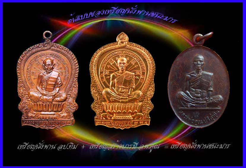 มาจากต้นแบบที่ดี และสวยงาม ด้านบนของเหรียญ มีพระสังกัจจายน์ ซึ่งหมายถึงความอุดมสมบูรณ์ โชคลาภ ด้านใต้ฐาน 2 ด้านมีรูปหมู ซึ่งเป็นปีเกิดของหลวงพ่อคูณ องค์หลวงพ่อ ถอดพิมพ์จาก 19 (รูปลักษณ์สวยงามเด่นสง่า) ได้พิมพ์นั่งพานมาจากหลวงปู่ทิม วัดละหารไร่ (พิมพ์ที่สมบูรณ์แบบและสวยงาม) |