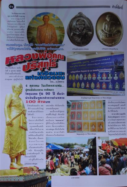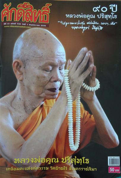 หนังสือศักดิ์สิทธิ์ ฉบับ วันที่ 1 พฤศจิกายน 2556.. หน้าปกหลวงพ่อคูณ ปริสุทโธ เกจิอมตะแห่งศตวรรษ วัดบ้านไร่ จ.นครราชสีมา..๙๐ ปี "ให้ลูกหลาน รักกัน สามัคคีกัน..รวยๆ...เด้อ" เนื้อหาในเล่ม..เล่าบรรยากาศงานฉลองวันเกิดท่านที่ผ่านมา (4 ตุลาคม 2556)... เก็บมาฝาก..ไม่ใช่ปัญหาแต่น่าจะเป็นความภาคภูมิใจของชาวเรา..ศิษย์ของท่าน..ตอนนี้..แรงจริงๆ..ทุกรุ่น..ไปที่ไหนมีแต่คนถามหา...หาของให้ไม่ทัน... |