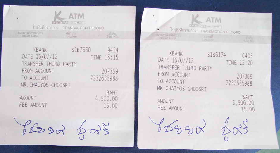 โอนครั้ง2 จำนวน 4,500บาท นายไชยยศ ชูศรี โทรบอกว่าส่งเหรียญกษาปณ์ให้แล้ว ได้โอนครั้ง2ไปให้ รวมเป็นเงิน10,000บาท หลังรับของแล้วจะโอนเงินให้10,000 บาท รวมเป็นเงิน20,000บาท วันพุธที่18/7/2555 เวลา15.00น. โทรไปถาม นายไชยยศ ชูศรี ว่าของไม่ได้ส่งมาให้ใช้ใหม นายไชยยศ ชูศรี ปิดโทรศัพท์เลยครับ และติดต่อไม่ได้เลยครับ
