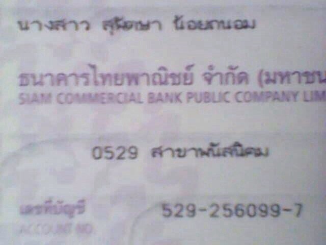 ธนาคาร ไทยพาณิชย์สาขา พนัสนิคม หมายเลขบัญชี 529-256099-7