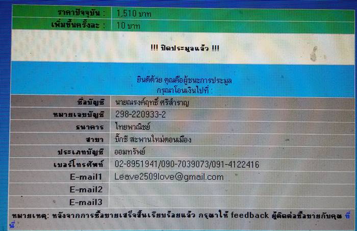 ผมได้ปิดและส่งออกบัตร โดยโอนเงิน(ค่าพระ 1510 + ค่าบัตร 600) เป็นเงิน 2110 บาท