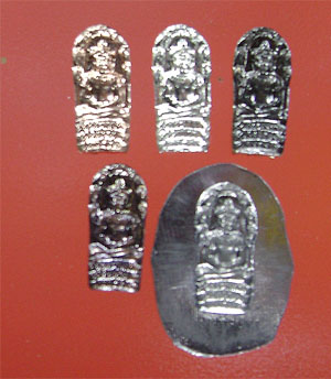 ๑.พระปรกมะขาม เนื้อนาก เนื้อเงิน เนื้อนวะ เนื้อทองแดง และตะกั่วไม่ตัดปีก รวมชุด ๕ องค์ ชุดละ ๔๐๐ บาท(ตอนประกาศชุดละ ๕๐๐ บาท หลวงพ่อบอกว่าแพงไปให้ลดลงเหลือ ๔๐๐ บาท) |