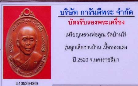 | หัวข้อกระทู้ : บัตรรับรอง เหรียญหลวงพ่อคูณ ลูกเสือชาวบ้าน บล็อกนิยม ปี2520 ??? |