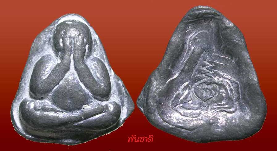พระปิดตาเนื้อตะกั่วน้ำท่วม สร้างปี 2517 ในช่วงน้ำท่วมวัดละหารไร่ หลวงปู่ท่านได้จารแผ่นแล้วนำไปหล่อมเทลงพิมพ์ ท่านดูแลการสร้างพระชุดนี้ด้วยตัวท่านเองครับ ลักษณะพิเศษของเนื้อตะกั่วท่านด้านหลังจะแห้งเป็นชั้นๆ แบบที่เห็นในภาพนี้ครับ