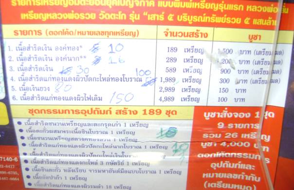 1. เนื้อสำริดเงิน องค์ทอง สร้าง189เหรียญ 1,500บาท