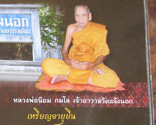 .... ในวันที่ 17 กุมภาพันธ์ 2553 เป็นวันครบรอบวันเกิด หลวงพ่อนิยม กมโล เจ้าอาวาสวัดเเจ้งนอก สิริอายุ ได้ 93 ปี จึงได้อนุญาติให้คณะศิษย์ได้จัดสร้างเหรียญ "อายุยืน" ขึ้น