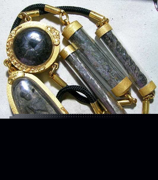 วันนี้ขอถ่ายภาพพระเครื่องและเครื่องรางที่ติดตัวประจำ ดูจากภาพอาจจะดูไม่ออกว่าห้อยอย่างไร ผมขออธิบาบดังนี้ครับ