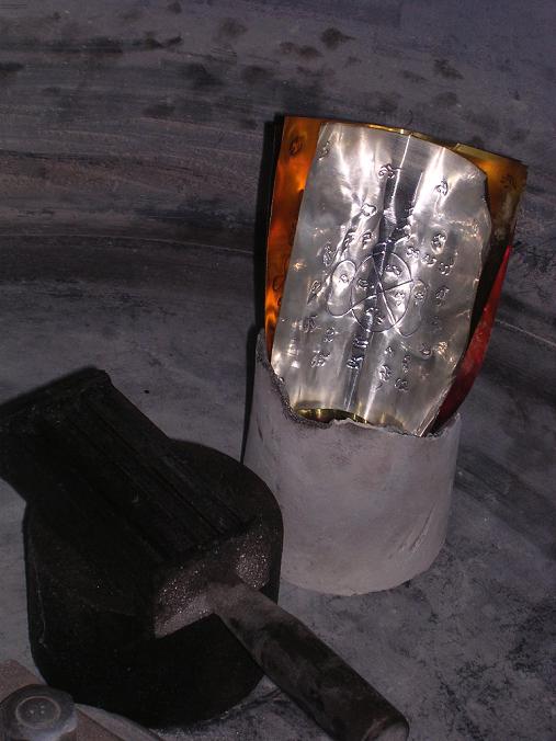 ภาพแผ่นยันต์ที่พระอาจารย์ป้อม(พระครูประภาสธรรมทัต) เจ้าอาวาสวัดหนองม่วง จ.ราชบุรี เกจิที่สืบทอดพุทธาคมสายเข็มทองคะนองฤทธิ์สายหลวงพ่อพิมพ์มาลัย และหลวงพ่อสวัสดิ์ อดีตเจ้าอาวาสวัดหุบมะกล่ำทั้งสองท่าน ท่านเมตตาจารแผ่นยันต์สดๆและได้มอบให้ผม เพื่อนำมาหลอมเป็นชนวนอันศักดิ์สิทธิ์ในการหล่อวัตถุมงคลชุดนี้ |