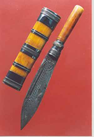 เมื่อตีเป็นดาบแล้วจะนำมาบรรจุของมงคลต่างๆ ที่ด้าม เช่น บรรจุผงอิทธิเจ, ผงตรีนิสิงห์เห ผงปถมัง, ผงว่านยาต่างๆ บางอาจารย์ใส่ตะกรุดลงบรรจุไว้ด้วยแล้วผนึกด้วยครั่ง เสร็จแล้วนำมาปลุกเสกอีกทีนานแค่ไหนแล้วแต่พระอาจารย์จะพอใจ, ไม้ต่างๆ ที่นำมาทำด้ามและฝักก็จะใช้ไม้อันเป็นมงคล เช่น ชัยพฤกษ์, ราชพฤกษ์, ไม้พยุง, ไม้ค้ำโบสถ์, งา, เขาสัตว์ เป็นต้น