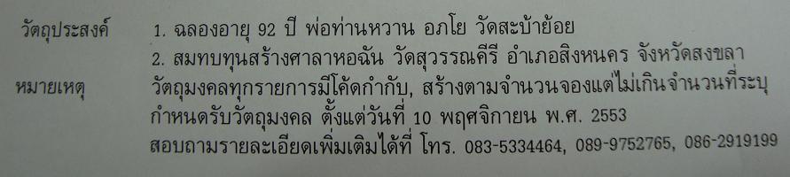 เปิดรับจอง รุ่น ฉลอง 92 ปี พ่อท่านหวาน วัดสะบ้าย้อย จ.สงขลา
