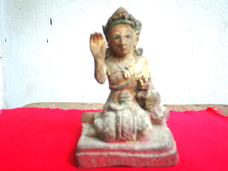 นางกวัก หลวงปู่เผือก วัดกิ่งแก้ว ปี 2496 หน้าตัก 5 นิ้ว สร้างจากดินผสมผงพุทธคุณลงสีฝุ่น นางกวักองค์นี้ยายได้มาเมื่อตอนทำบุญบ้าน ปี 2496 โดยหลวงปู่เผือกท่านมีเมตตานำมาให้เป็นของขวัญขึ้นบ้านใหม่ ยายได้เก็บรักษาไว้อย่างดีจนมาบัดนี้ตกทอดมาถึงผม ผมก็คงเก็บรักษาต่อไป ถ้าขายเมื่อใหร่ วิญญาณยายเอาผมตายแน่ๆ |