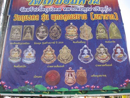 ทีนี้พอพิมพ์ทำเสร็จหมดทางวัดก็กำลังพิมพ์โบว์ชัวร์อยู่ครับ ผมเลยไปถ่ายรูปที่ป้ายหน้าวัดมาให้ดูกันก่อนครับจะได้หายสงสัยกัน จากรูปจะเห็นว่ามีพระทุกพิมพ์ทั้งที่จองผ่านเน็ตและที่เปฺดจองที่วัดครับ ที่วัดก็เพิ่งเปิดให้จองมา 2-3 วันนี้เองครับก็ลองดูรูปที่ผมถ่ายมาก่อนครับเพราะโบว์ชัวร์ก็ยังไม่เสร็จซะที่ผมก็รออยู่เหมือนกันยังไม่ได้จองเลยครับ |