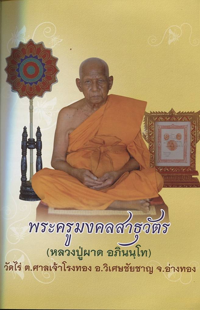 ประวัติ หลวงปู่ผาด อภินนฺโท (พระครูมงคลสาธุวัตร) วัดไร่ ต.ศาลเจ้าโรงทอง อ.วิเศษชัยชาญ จ.อ่างทอง ปัจจุบันอายุ 95 พรรษา 74 เป็นพระผู้ทรงอภิญญา กรรมฐานแก่กล้า สำเร็จวิชาธรรมกายขั้นสูงสุด อ้างจากคำยืนยันหลวงพ่อสด วัดปากน้ำ เมื่อครั้งมีการอบรมพระสงฆ์จากทั่วประเทศเรื่องวิชาธรรมกาย ที่วัดพระเชตุพนวิมลมังคลาราม ว่า แสงแห่งพระธรรมกายนั้น
