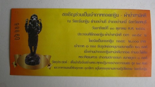 โทรติดต่อกับทางวัดโดยตรง (ตามรายละเอียดบนซอง)