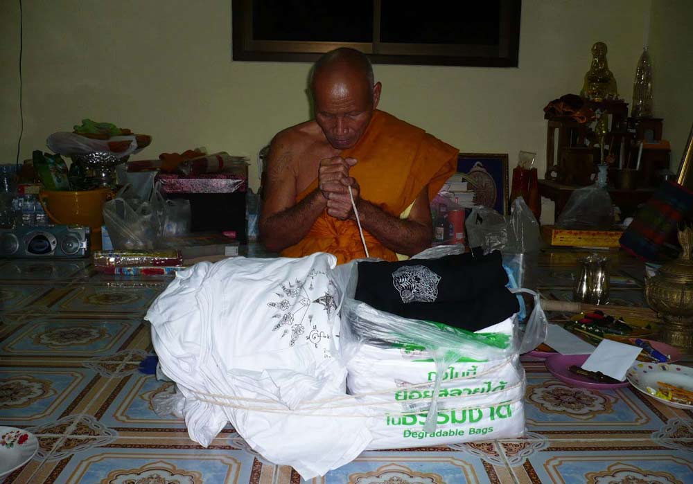 เสื้อที่ร่วมทำบุญนี้จำนวนการสร้างเพียง ๕๐๐ ตัวเท่านั้น ราคาตัวละ ๒๕๐ บาท(ค่าจัดส่งตัวละ ๓๐ บาท จอง ๕ ตัว ค่าจัดส่ง ๖๐ บาท จอง๑๐ ตัวขึ้นไปค่าจัดส่ง ๗๐ บาท) เสื้อดังกล่าวนี้ผ่านการอธิฐานจิต จากพระเกจิชื่อดังของจังหวัดอุบลราชธานีดินแดนแห่งนักปราชญ์ โดยหลวงปู่คำบุ คุตตจิตโต วัดกุดชมภู อำเภอพิบูลมังสาหาร ในวาระแรก ส่วนในวาระที่สอง หลวงปู่เร็ว ฉฺนทโก วัดหนองโน อำเภอตาลสุม จังหวัดอุบลฯ ซึ่งเป็นพระนักปฏิบัติ เป็นศิษย์สายตรงหลวงปู่ญาท่านสวน ฉฺนทโร วัดนาอุดม และหลวงปู่ญาท่านสวน ได้ถ่ายทอดสรรพวิชาต่างๆให้แก่หลวงปู่เร็ว ฉฺนทโก จนหมดสิ้น ดังนั้นสมาชิกทุกท่านมั่นใจได้เลย เสื้อชุดนี้ผ่านการอธิฐานจิตทั้งสองวาระ โดยเกจิอาจารย์สายสมเด็จลุน ดังนั้นจึงน่าบูชาและสวมใส่ทั้งตัวเองและคนที่รักหรือจะมอบเป็นของขวัญแก่เพื่อนๆ พี่ๆ อีกด้วย การออกแบบได้อย่างสวยงามยิ่งนัก ครับ