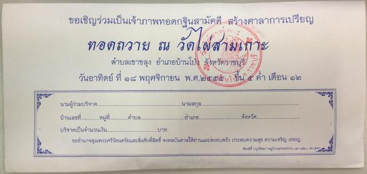 ขอเชิญพี่ๆเพื่อนๆน้องๆทุกท่าน ทำบุญเป็นเจ้าภาพทอดกฐินสามัคคี เพื่อร่วมสร้างศาลาการเปรียญ ของวัดไผ่สามเกาะ ราชบุรี