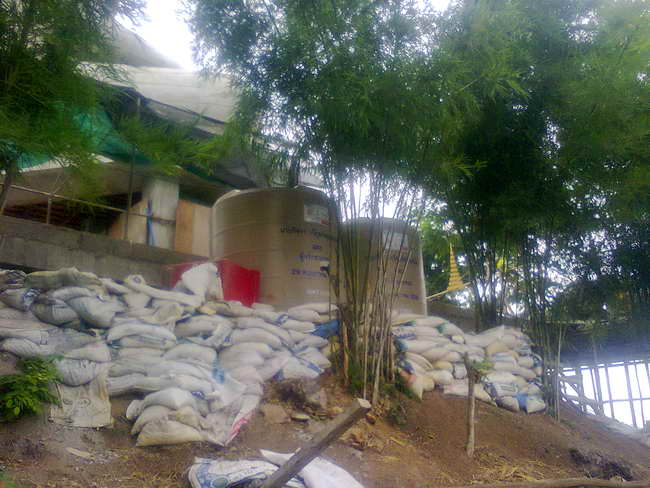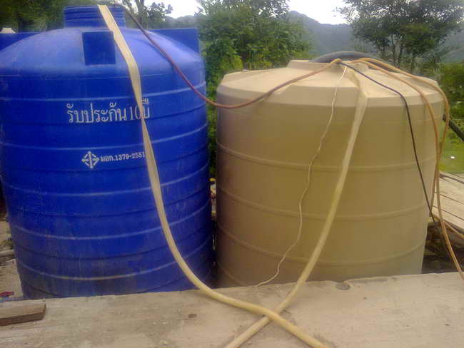 ผมได้กราบเรียนหลวงปู่วิไลย์ เพื่อขออนุญาต จัดสร้างถังน้ำพร้อมติดตั้งฐาน จุดประสงค์เพื่อจะได้มีน้ำไว้ใช้งานบนเขาที่ประดิษฐานพระใหญ่ เพราะในขณะนี้บนยอดเขามีถังน้ำที่ญาติธรรมท่านถวายไว้ใช้งานเพียง 5 ใบเท่านั้น และทั้ง 5 ใบนี้ก็วางไว้โดยไม่เป็นระเบียบ และมีไม่เพียงพอต่อการใช้งานในการทำงานก่อสร้างและใช้ในกิจธุระส่วนตัว และเวลาที่น้ำหมดฝ่ายที่จะเติมน้ำแต่ละครั้งต้องลากสายไป ๆ มา เพราะถังอยู่คนละที่กัน ( เนื่องจากเป็นพื้นที่บนภูเขาและพื้นที่มีจำกัด ) ส่วนวันใช้งานก็ประเภทเดี๋ยวเดียวน้ำก็ไม่พอแล้ว
