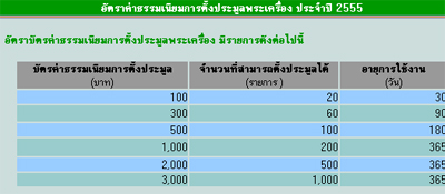 ตัวอย่าง เช่น ค่าธรรมเนีบม 500 บาท อายุการใช้งาน 365 วัน ส่วนจำนวนการตั้งประมูลอาจลดลงเหลือ 75 รายการ
