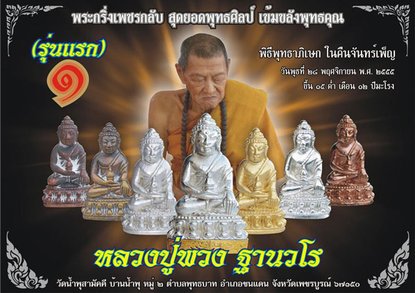 เกือบลืม ทหารพ่อขุนที่เพชรบูรณ์ มากราบนี่ก็เพราะเคยขับฮอผ่านเขารังแล้วได้เห็นพระชรารุปหนึ่งนั่งอยู่บ้นก้อนเมฆ เห็นหน้าแต่ไม่ทราบว่าเป็นหลวงปู่พวง พอทราบว่าศิษย์หลวงพ่อทบ สร้างพระกริ่งเพชรกลับ จึงได้มาเช่า เท่านั้นแหละช๊อตไปเลย พระชราองค์ที่เห็นบนก้อนเมฆ หลวงปู่พวงนี่เอง !
