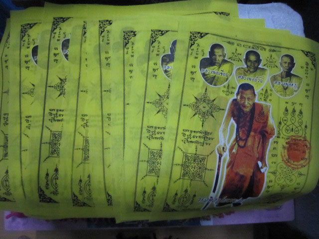ผ้ายันต์ หลวงปู่พวง วัดน้ำพุ เป็นอย่างเดียวที่เปิดจองแล้วไม่มีท่านไหนจองไปเลยสำหรับผมก็เลยเก็บไว้เอง ๑๐ ผืนโดยสมนาคุณกับท่านที่จองกับผมยอดสูงไป ๒ ผืน ตอนนี้เหลือ ๘ ผืน ช่วงก่อนนี้ที่วัดยังมีหลังจๅกมีประสบการณ์ที่ไม่ใหม้ไฟคนแห่เช่าที่วัดจนหมด เมื่อก่อน ๒๐๐ บาทไม่มีคนเช่าตอนนี้ ๔๕๐ บาทแดงยังไม่ปิดนะครับ จัดสร้างเพียง ๙๙๙ ผืนเท่านั้น