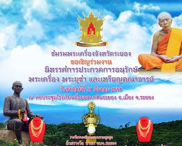 ในวันอาทิตย์ที่ 17 มีนาคม 2556 ณ หอประชุมโรงเรียนมัธยมตากสิน อ.เมือง จ.ระยอง จัดโดย ชมรมพระเครื่องจัดหวัดระยอง
