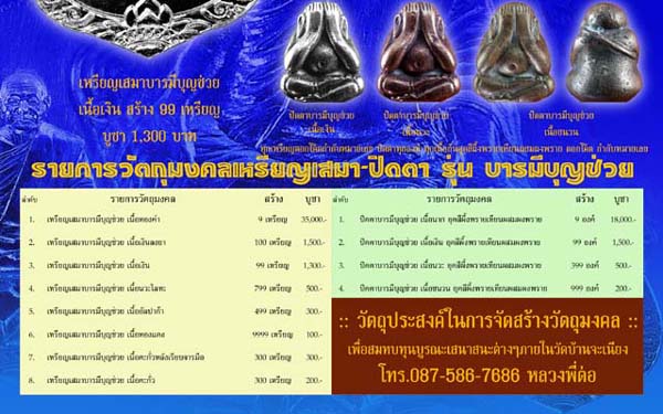 จำนวนการสร้างเหรียญเสมา บารมีบุญช่วย
