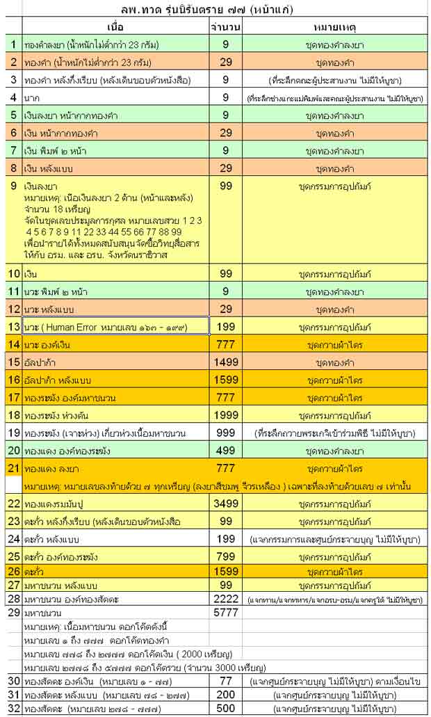 จากกระทู้ครั้งก่อน...ได้สอบถามทางคุณพิภพ16 เพื่อความถูกต้อง และปรับปรุงตารางจัดสร้าง ลพ.ทวด รุ่นนิรันตราย ๗๗ ครับ..