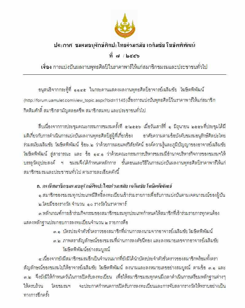 มาลุ้นกันครับพี่น้อง ชมรมอนุรักษ์ฯ ท่านอาจารย์เฉลิมชัย เริ่มจับรางวัลการแบ่งปันผลงานพุทธศิลป์ราคาพาร์ให้แก่สมาชิกชมรมและประชาชนทั่วไปครับ ที่วัดร่องขุ่น จ.เชียงราย