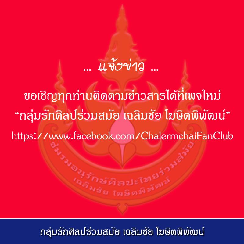 " ขณะนี้ทีมงานผู้ดูแลเพจได้ทำการสร้างแฟนเพจขึ้นใหม่ ชื่อ "กลุ่มรักศิลป์ร่วมสมัย เฉลิมชัย โฆษิตพิพัฒน์" เพื่อใช้แทนเพจเดิม เนื่องจากเพจเดิม (ชมรมอนุรักษ์ศิลปะไทยร่วมสมัย อาจารย์เฉลิมชัย โฆษิตพิพัฒน์) เป็นชื่อของชมรม และเราไม่สามารเปลี่ยนชื่อเพจใหม่ได้ เนื่องจากเฟสบุ๊คไม่อนุญาตให้เราลบรายชื่อผู้กดถูกใจจำนวนมากออกได้ ทางทีมงานจึงทำเพจใหม่ขึ้นมาแทน "