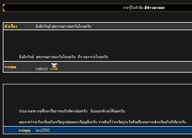 ส่วนมหาเศรษฐีบุญฤทธิ์ชุดเนื้อธรรมดา ผมยังไม่ได้รับจากศูนย์เลยครับ ชุดปัดทองจัดส่งครบนานแล้ว ยังให้คำมั่นสัญญาเหมือนเดิมครับ ได้รับจากศูนย์จะรีบจัดส่งทันทีครับ |