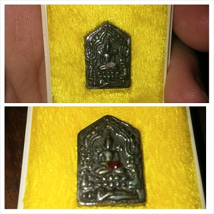 ปล.ผมมีพระที่ชำรุดเป็นรูหน้าองพระเนื่องจากการหล่อไม่เต็มของพิธีไม่ได้ทำแตกเองจะนำมาให้คอได้ไหมครับ มีพีที่ทำงานบอกว่าห้อยพระแตกไม่ดี ตอนนี้ผมได้เอาหินที่ได้จากงานฝังลูกนมิตรวัดทับมามาอุดใว้ครับ ลองดูตามภาพครับ |