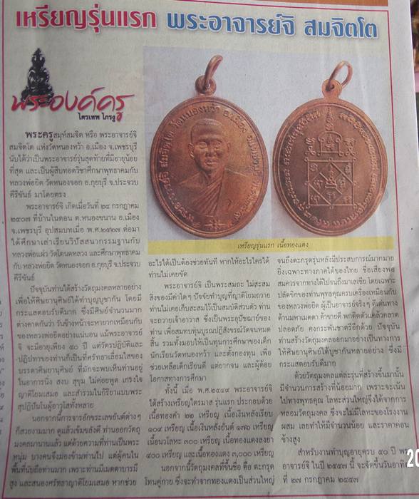 ทั้งนี้เมื่อ พ.ศ.2549 พระอาจารย์จิ ได้สร้างเหรียญไตรมาส รุ่นแรก ประกอบด้วย เนื้อทองคำ 22 เหรียญ เนื้อเงินหลังเรียบ 109 เหรียญ เนื้อเงินหลังยันต์ 176 เหรียญ เนื้อนวโลหะ 300 เหรียญ เนื้อทองแดง 3,000 เหรียญ