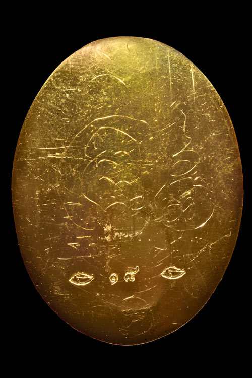 1.1 เนื้อทองคำบริสุทธิ์ 96.5% น้ำหนักโดยปะมาณ 1 บาท (15.2 กรัม) ทรงหลังเต่า แบบเรียบ จารลายมือครูบากฤษดา จำนวน 39 องค์