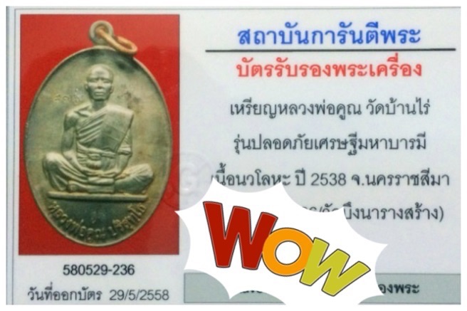 เมื่อเหรียญรุ่นนี้ออกมาสู่กระดานใหม่ๆ ทางสมาชิกได้ส่งเหรียญรุ่นนี้ออกบัตร เมื่อเดือน พฤษภาคม ที่ผ่านมา ทางเว๊ปออกบัตรรับรอง ให้..ตามตัวอย่างบัตร ที่เพื่อนๆ สมาชิกนำมาให้ดูครับ