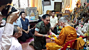 ท่าน ผบ นย ฐารทัพเรือสัตหีบ พลเรือโท ธนะกาญน์ใคร่ครวญ พร้อมลูกชาย และท่าน นาวาเอก ณรงค์ วงษ์ประเสริฐ ฝ่ายเสธ.ประจำ ผบ.นย./ผบ.กปช.จต. ค่ายตากสิน จันทบุรี และท่านรองผู้ว่าจังหวัดตราด ได้เข้ากราบไหว้ขอพรหลวงปู่บัว และร่วมทำบุญ เพื่อความเป็นศิริมงคล ในคราวตรวจเยี่ยมราชการ จ.ตราด
