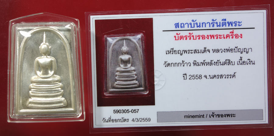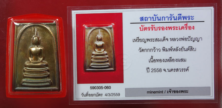 พระสมเด็จหลังยันต์สิบ หลวงพ่อปัญญา วัดกกกว้าว จ.นครสวรรค์ (ท่านเป็นศิษย์หลวงพ่อโอด วัดจันเสน) ออกบัตรรับรองได้แล้วครับ