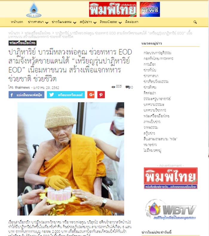 ในพื้นที่ 3 จังหวัดชายแดนใต้ ในครั้งนั้นคณะศิษย์หลวงพ่อคูณ ผู้จัดสร้างรุ่นปาฏิหาริย์ EOD ได้ประกาศงานบุญเปิดรับบริจาค 2,000 บาท