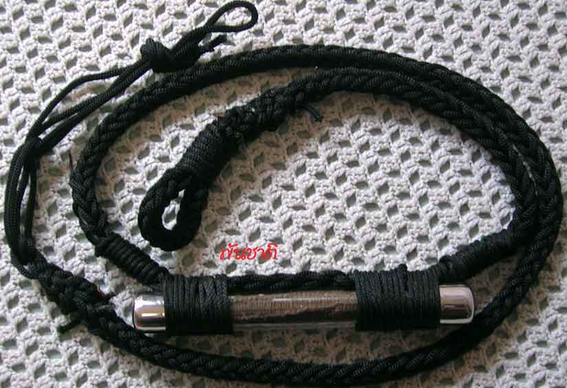 ผมลองหาเชือกรบกวนพ่อตาท่านช่วยกรุณาถักเชือกคาดเอวให้พอได้คาดตะกรุดดอกนี้ครับ คราวนี้ก็ได้คาดตะกรุดติดตัวไปไหมมาไหนอุ่นใจครับ