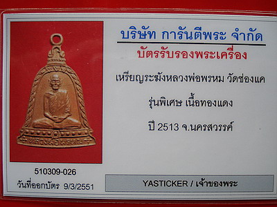 ....ต่อมาผมได้นำพระองค์นี้ มาตั้งประมูลพร้อมบัตรรับรองอีกครั้ง ...