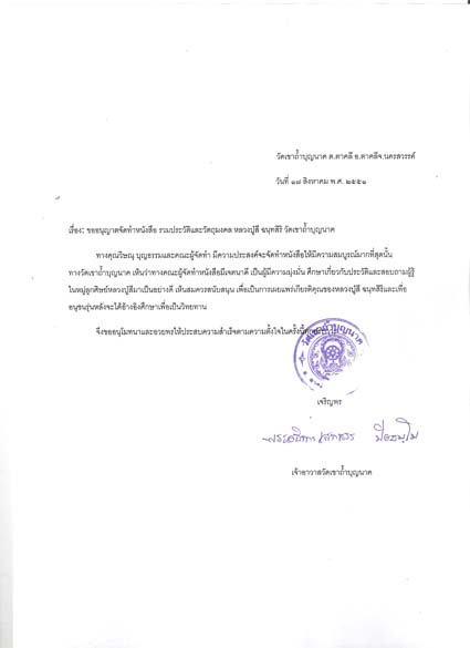 ทางคณะศิษย์ผู้จัดสร้าง จะถวายให้วัดเขาถ้ำบุญนาคโดยไม่หักค่าใช้จ่ายใดๆจำนวน 500เล่ม(หรืออาจจะมากกว่าหากรวบรวมเงินบริจาคได้เพิ่มขึ้น) ทั้งนี้เพื่อให้ทางวัดนำเงินไปพัฒนาวัดเขาถ้ำบุญนาคในภายหน้าต่อไป และจะเปิดให้สั่งจองพิมพ์จำนวนเล่มเท่าจำนวนจอง รายได้ในส่วนสั่งจองนี้หลังจากหักค่าใช้จ่ายทางงานพิมพ์แล้วรายได้ที่เหลือทั้งหมดจะนำไปบูรณะมลฑปลป.สี ในส่วนของหลังคาที่ชำรุดทำให้น้ำรั่วซึมตอนฝนตก ให้เห็นผลในเร็ววัน
