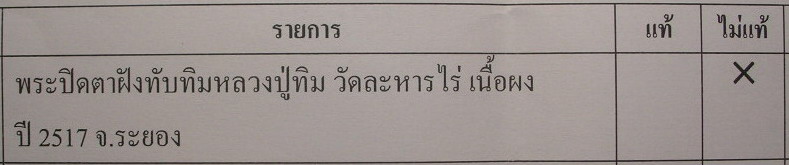 - ผลคือพระไม่แท้
