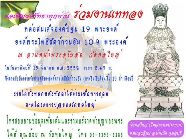 - องค์พระโพธิสัตว์กวนอิม ขนาดหน้าตัก 5 นิ้ว จำนวน 109 องค์
