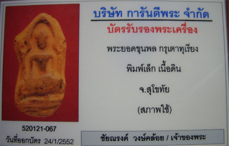 -ท่านมเหศวร ผมหาบัตรรับรองไม่เจอ วันอันอังคารนี้ ผมจะรีบดำเนินการ จัดส่งพระไปg-pra อีกรอบ เพื่อขอบัตรรับรองใหม่ครับ...