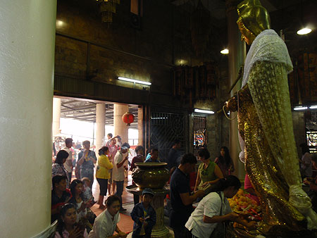 ตั้งใจจะไปทำบุญ ไหว้พระปิดทอง วางเส้นทางไว้หลายโปรแกรม สรุปแล้วมาจบที่เส้นทางสายมหาชัย-ราชบุรี ปกติแล้วผมจะพาครอบครัวไปทำบุญที่วัดหนองหอย พร้อมสักการะปิดทอง-ขอพร เจ้าแม่กวนอิม วันนี้เลยตั้งใจอีกครั้ง ตื่นแต่เช้าไปตลาดซื้อผลไม้ไปไหว้เจ้าแม่ 9.00 น ออกเดินทางสู่เส้นเพชรเกษม นครปฐม ราชบุรี เลี้ยวออกแยกดอนทราย ผ่านเจ็ดเสมียน แล้วข้ามสะพานแม่น้ำแม่กลอง ไปอีก 7 กม. ก็ถึงวัดหนองหอยประมาณ11 โมงกว่าๆ วันนี้ที่วัดคนที่มาทำบุญค่อนข้างบางตาครับแต่ก็ดูแบบสบายๆไม่น้อย ไม่มาก พอดีช่วงที่ผมไปทางวัดมีขบวนเสด็จ ของพระองค์เจ้าศรีรัตน์และพระองค์ทีปังกร เสด็จส่วนพระองค์ที่วัดหนองหอยเลยทำให้บรรยากาศภายในวัดเงียบเพราะห้ามเสียงดัง ถวายของเสร็จ พร้อมทั้งปิดทองเจ้าแม่กวนอิม ก่อนกลับแวะซื้อของที่ระลึก เป็นหยกที่ทำเป็นรูปผักกาด พอดีเพื่อนๆเขาอยากได้ ก็เลยจัดให้.....