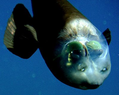 ปลา บาร์ เริลอายแปซิฟิก (Pacific barreleye) มีขนาดลำตัวยาวประมาณ 6 นิ้ว ( 15 เซ็นติเมตร ) บริเวณส่วนหน้าที่เห็น 2 จุดเล็กนั้นไม่ใช่ ตาแต่เป็น อวัยวะรับกลิ่น และที่เห็นเป็นโดมสีเขียวนั้นคือตัวกรองแสงอาทิตย์จากด้านบน และมีดวงตาเป็นจุดเล็กๆ ลางๆ เหนือรูรับกลิ่น ปลาบาร์เริลอายเป็นที่รู้จักแล้วมาตั้งแต่ปี ค.ศ. 1939 แต่สถาพในการค้นพบครั้งแรก ปลาได้เสียชีวิต และมีสภาพเสียหายอย่างมากจากการถูกจับได้ด้วยการลากอวน แต่รูปที่ได้เห็นชุดนี้ได้รับการบันทึกได้ในขณะมีชีวิต และมีสภาพสมบูรณ์ เมื่อวันที่ 23 กุมภาพันธ์ 2552