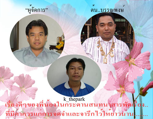 **ขอจารึกความประทับใจนี้ไว้ ในกระดานสนทนาสารพัดเรื่อง แห่งนี้ เพื่อเป็นตัวอย่างอันดี และมีค่าแห่งการจดจำ และสมควรยกย่องไปตลอดกาล...มิลืม**